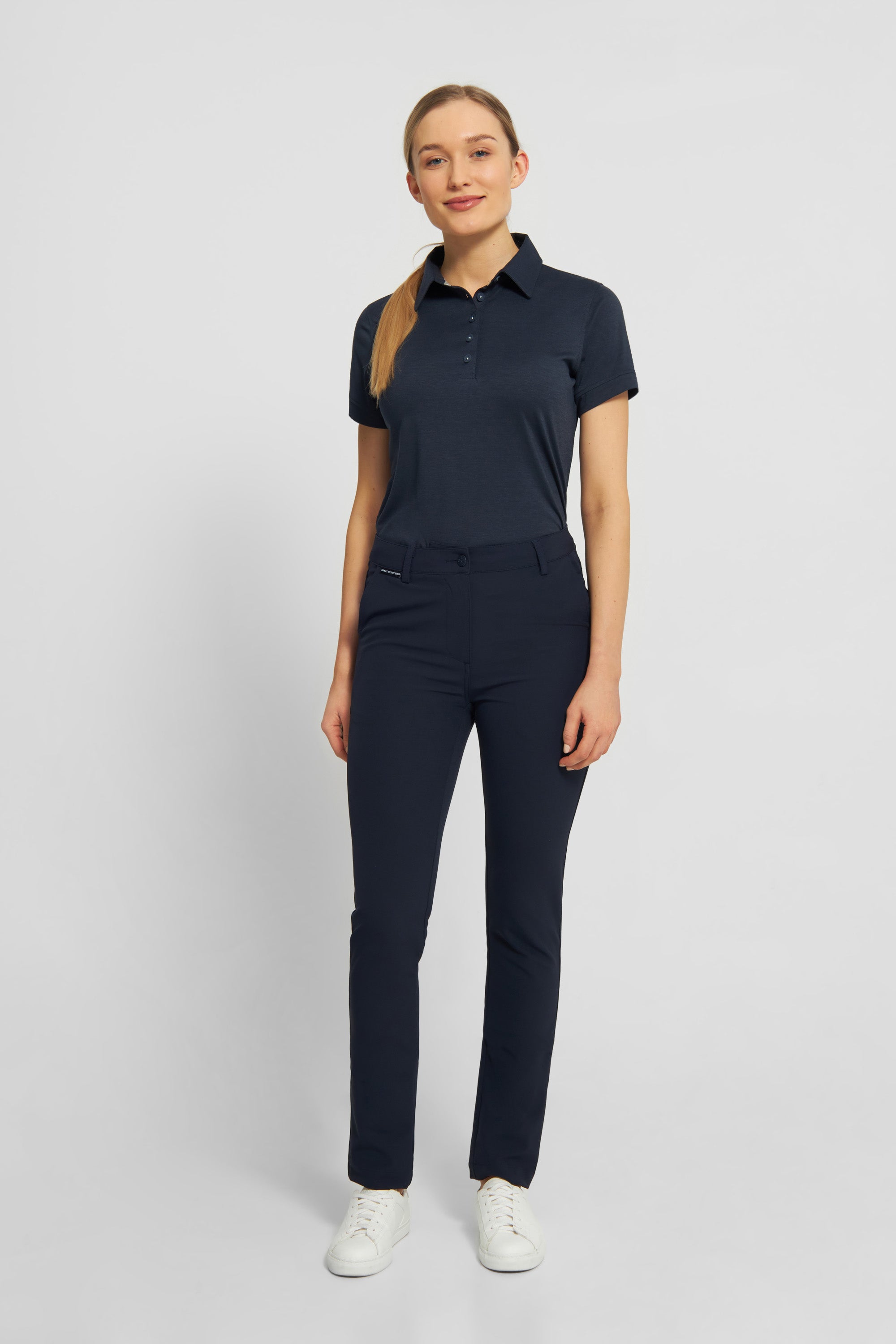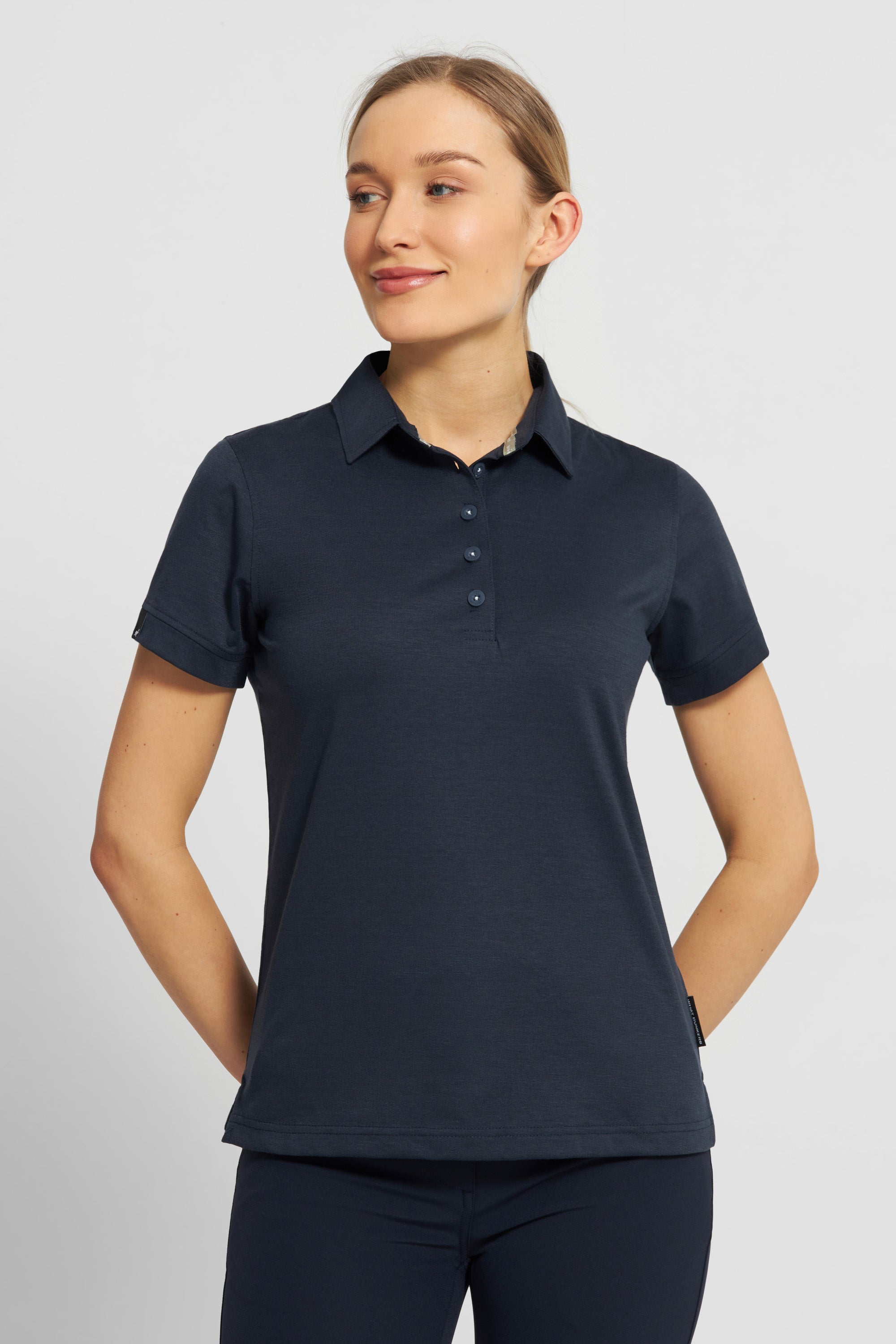 The Jackie polo shirt is designed with an understated style in mind. Crafted from lightweight and breathable fabric with a cotton feel, this polo shirt features maximum breathability and a comfortable fit.