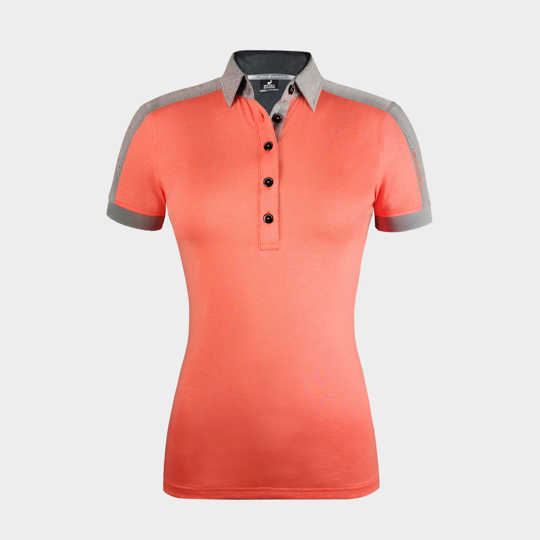 Golf polo shirt in melange fabric with 4-way stretch. Supersoft, breathable and quick drying. 2 color WHAT BUNKERS embroidery on left sleeve.