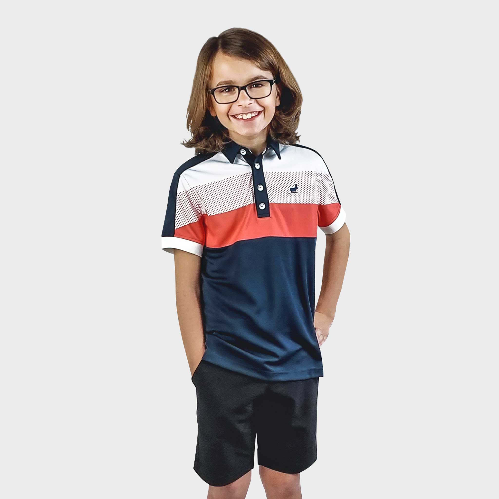 Andrew junior golf polo - navy / red / white