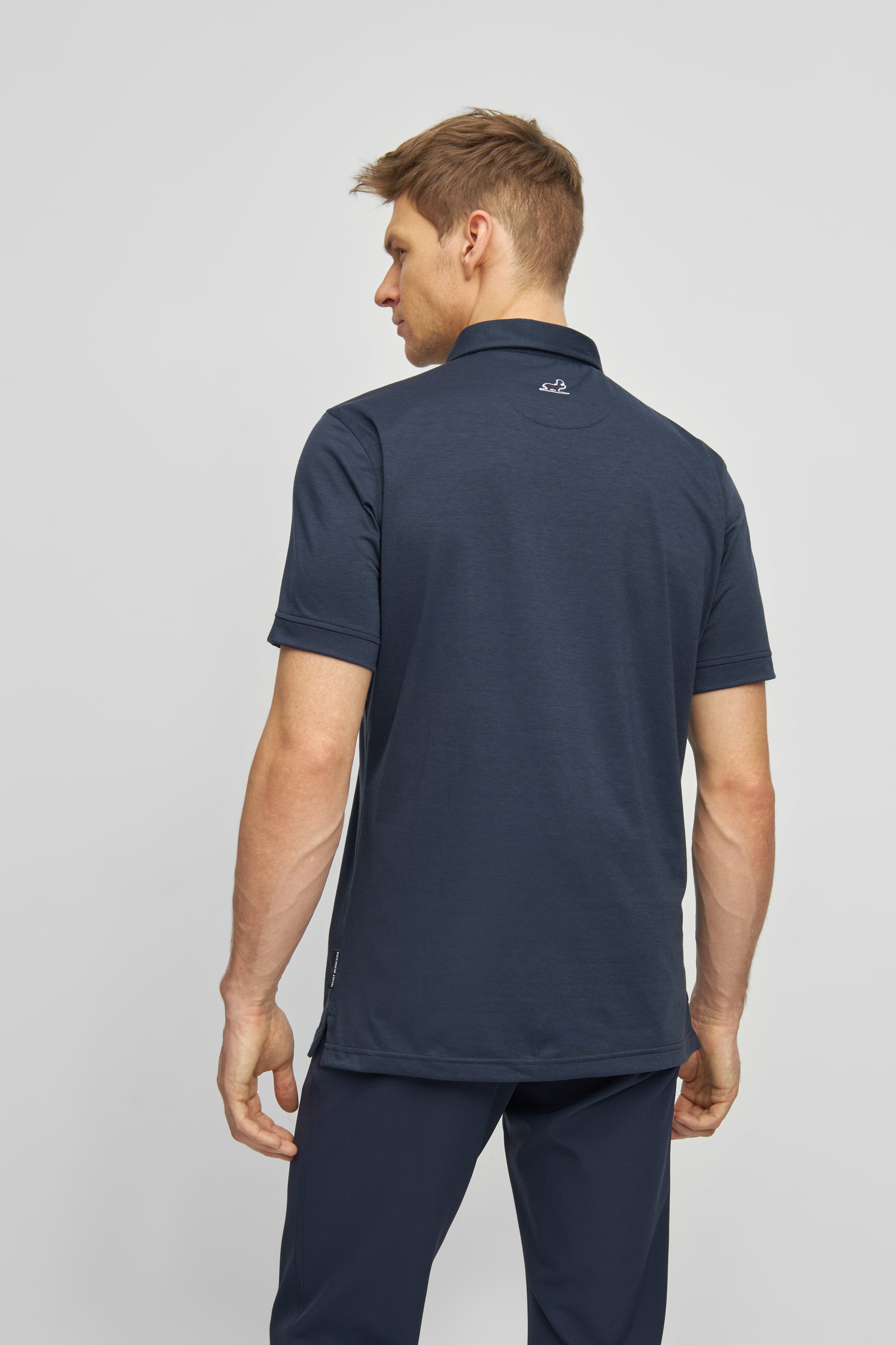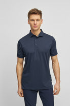 The John polo shirt is the perfect match for any golf enthusiast thanks to its deep navy color, soft feel, and breathable material. The cutaway collar and cool details make it a timeless addition to your wardrobe.
