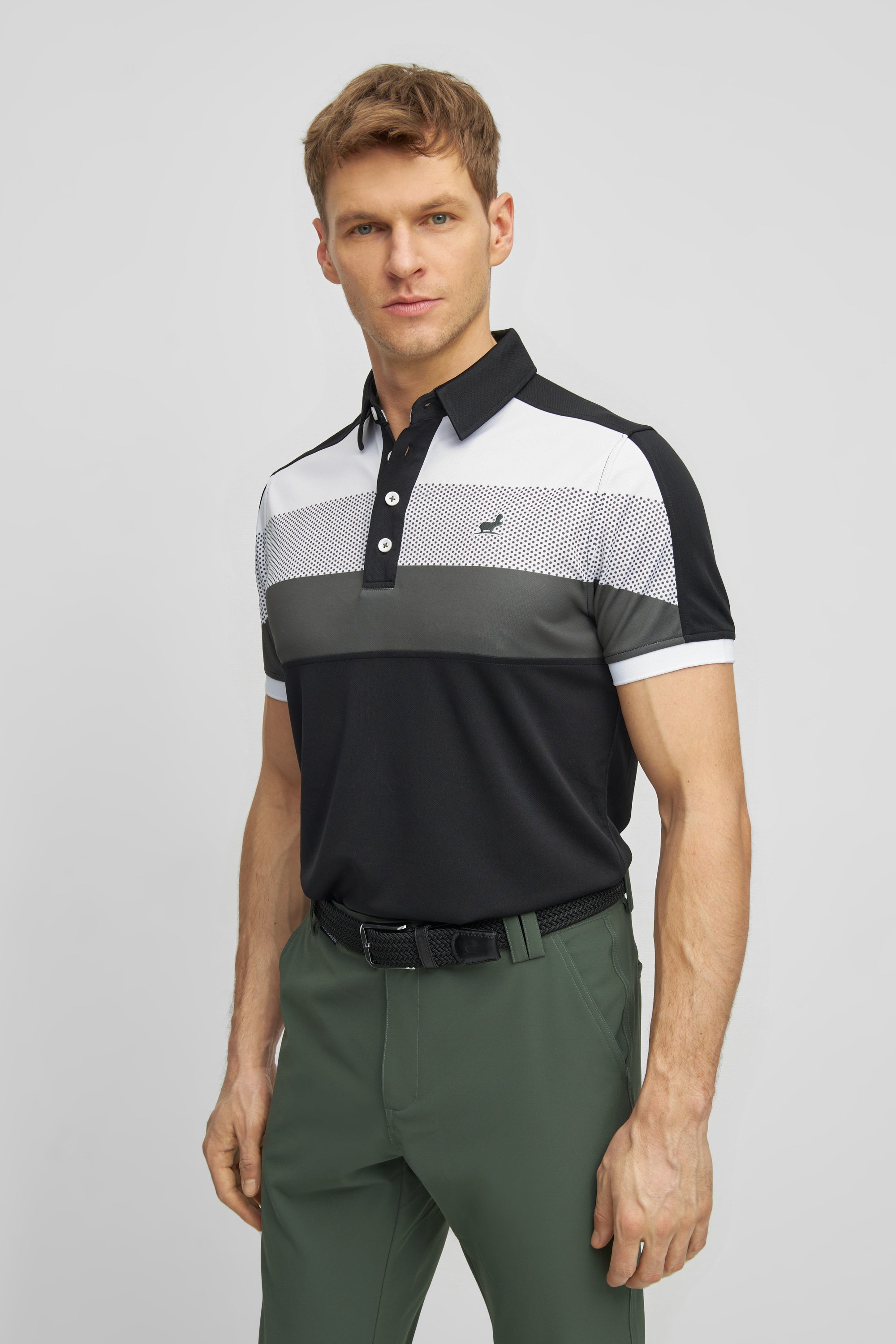 Andrew golf polo shirt - black / thyme / white