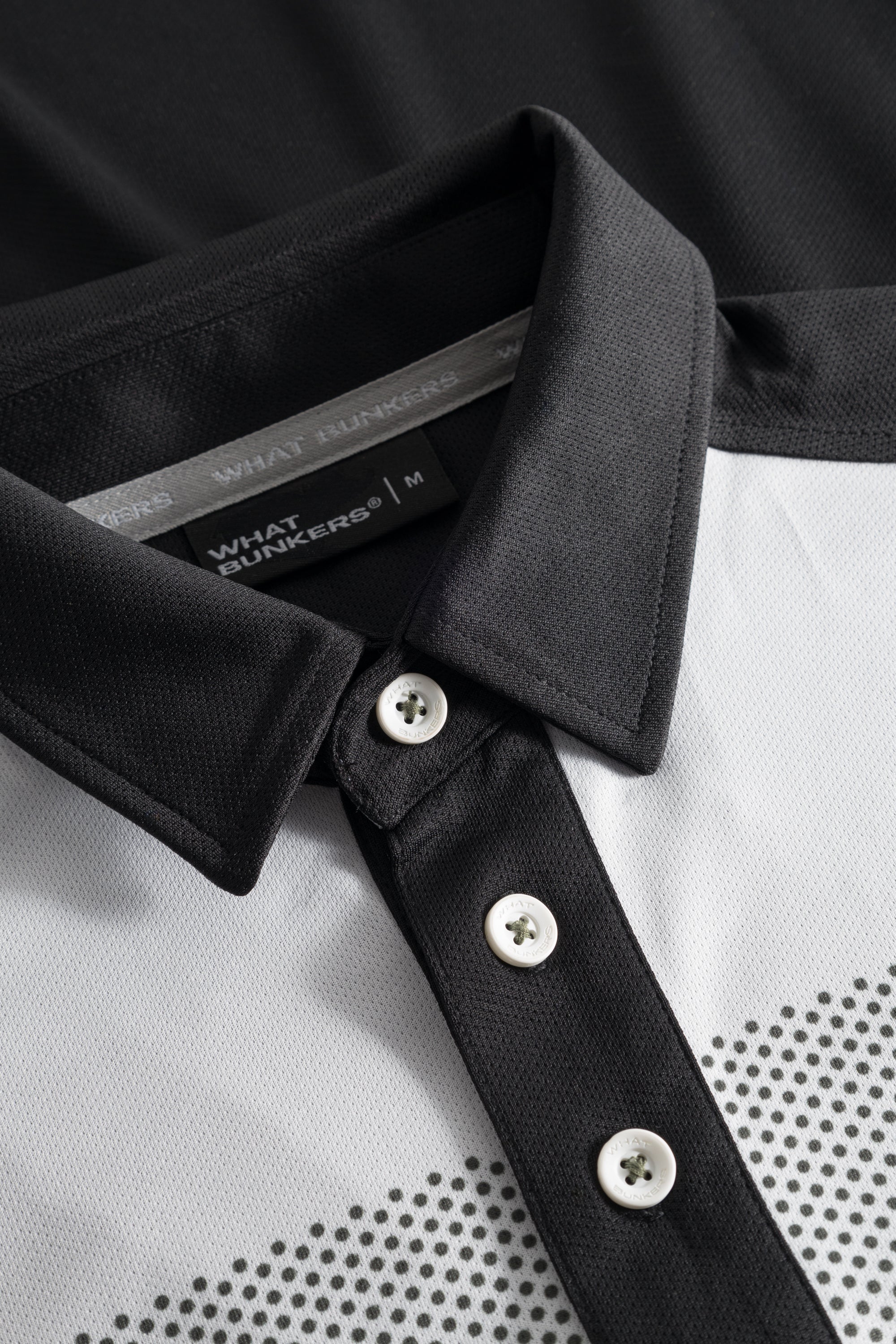 Super cool golf shirt with sublimation printed fabric insert on the chest.