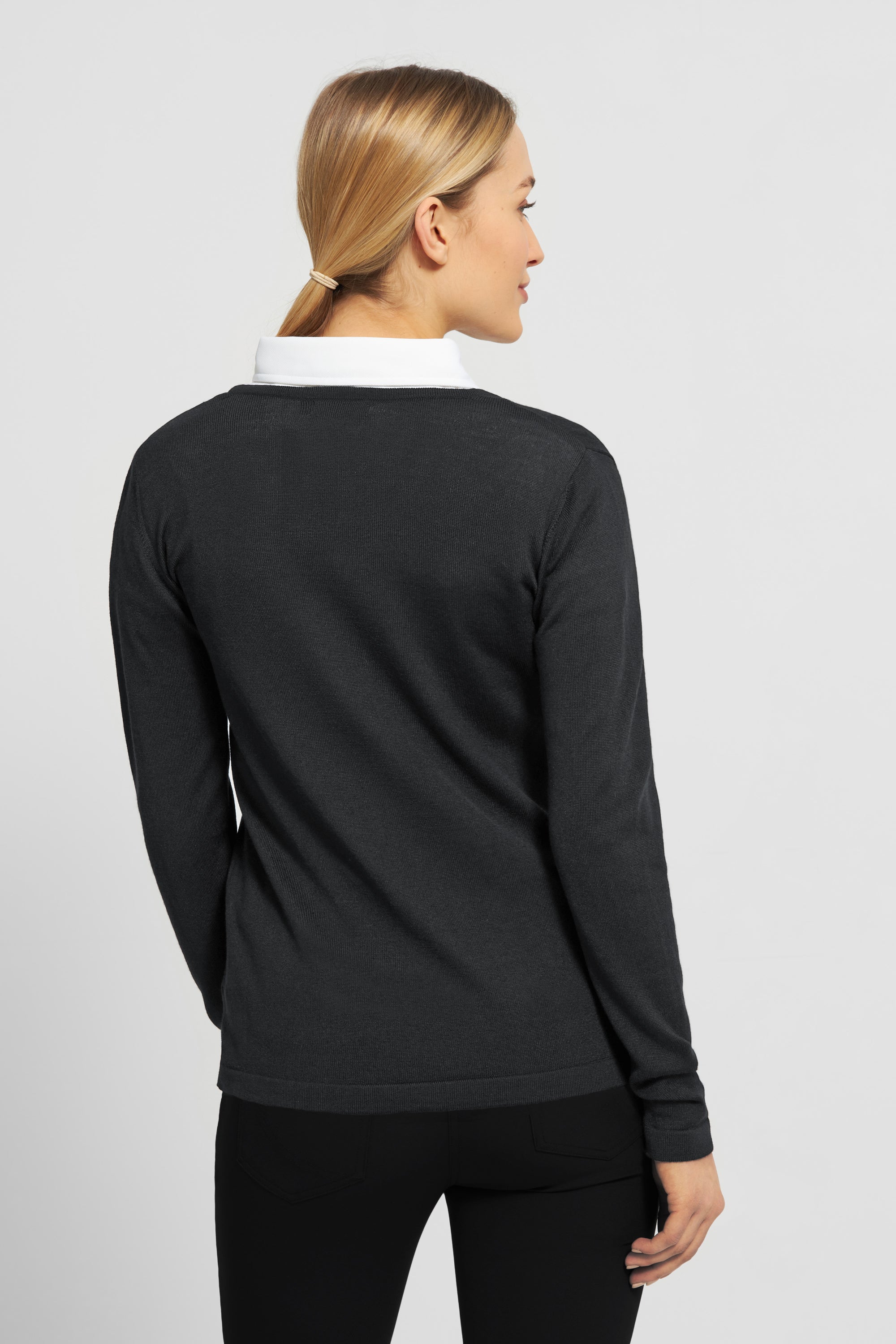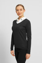 Super soft sweater made from 50% extra fine Italian Merino wool / 50% acyllic, with long sleeves and v-neck.